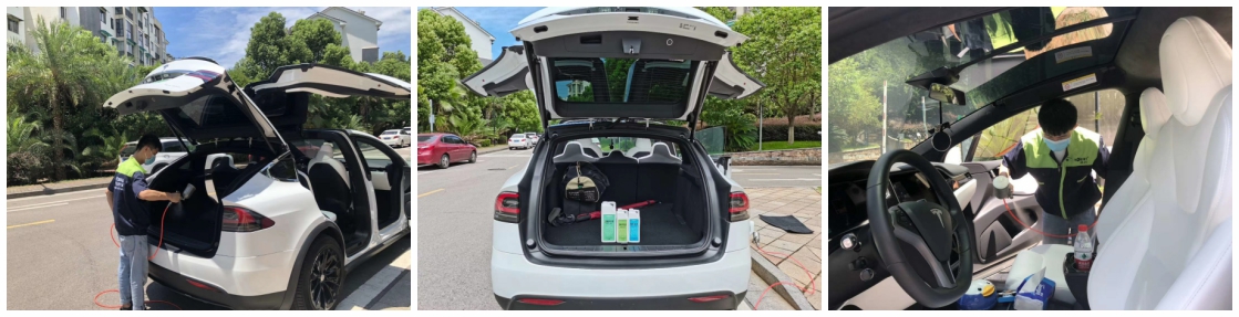 特斯拉車主剛購新車不久,車內的異味一直困擾著他,為解決這個問題,車主委托奧因,為其清除新車異味、車內污染清除。