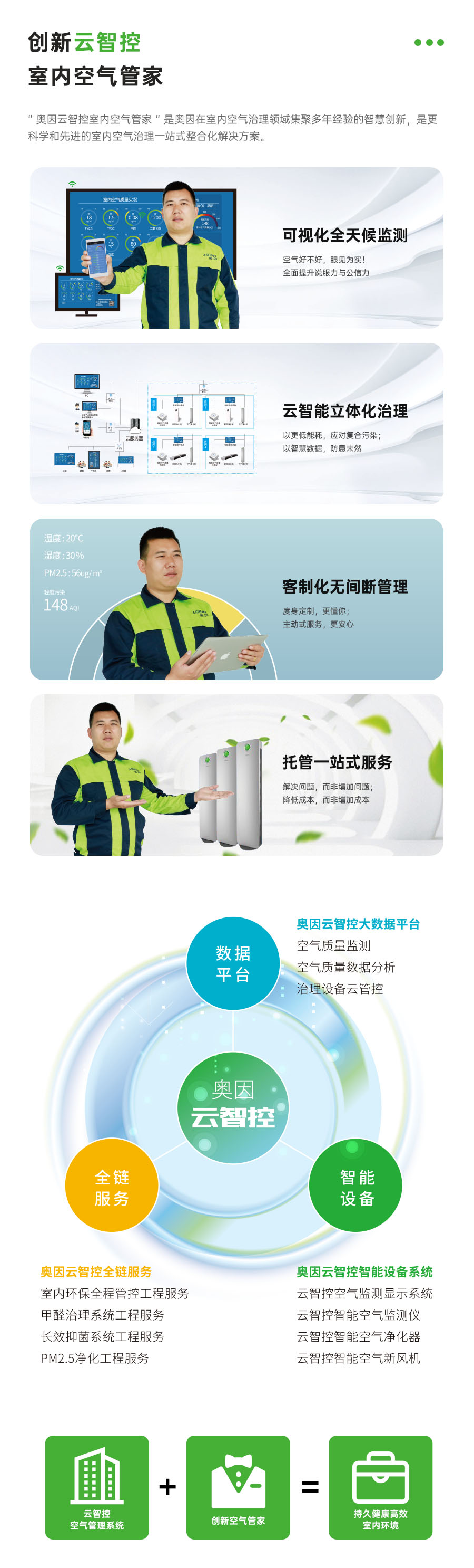 奧因的云智控室內空氣管家,改變了傳統室內空氣治理不可視以及治理缺乏說服力等弊端,讓每一位身處奧因空氣治理空間的人,都能夠對空氣凈化效果眼見為實。